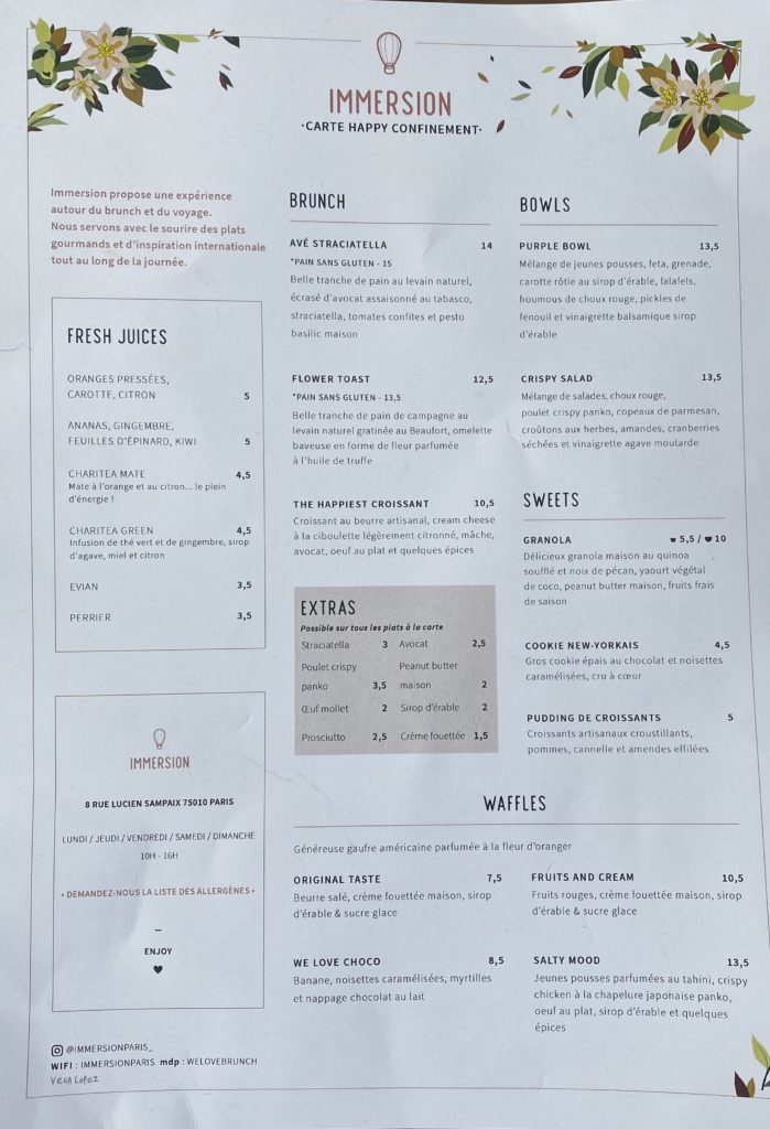 Immersion paris c’est une enseigne spécialisée dans le brunch où vous retrouverez des plats d’inspiration internationale dans un lieu chaleureux avec une équipe de passionnée!